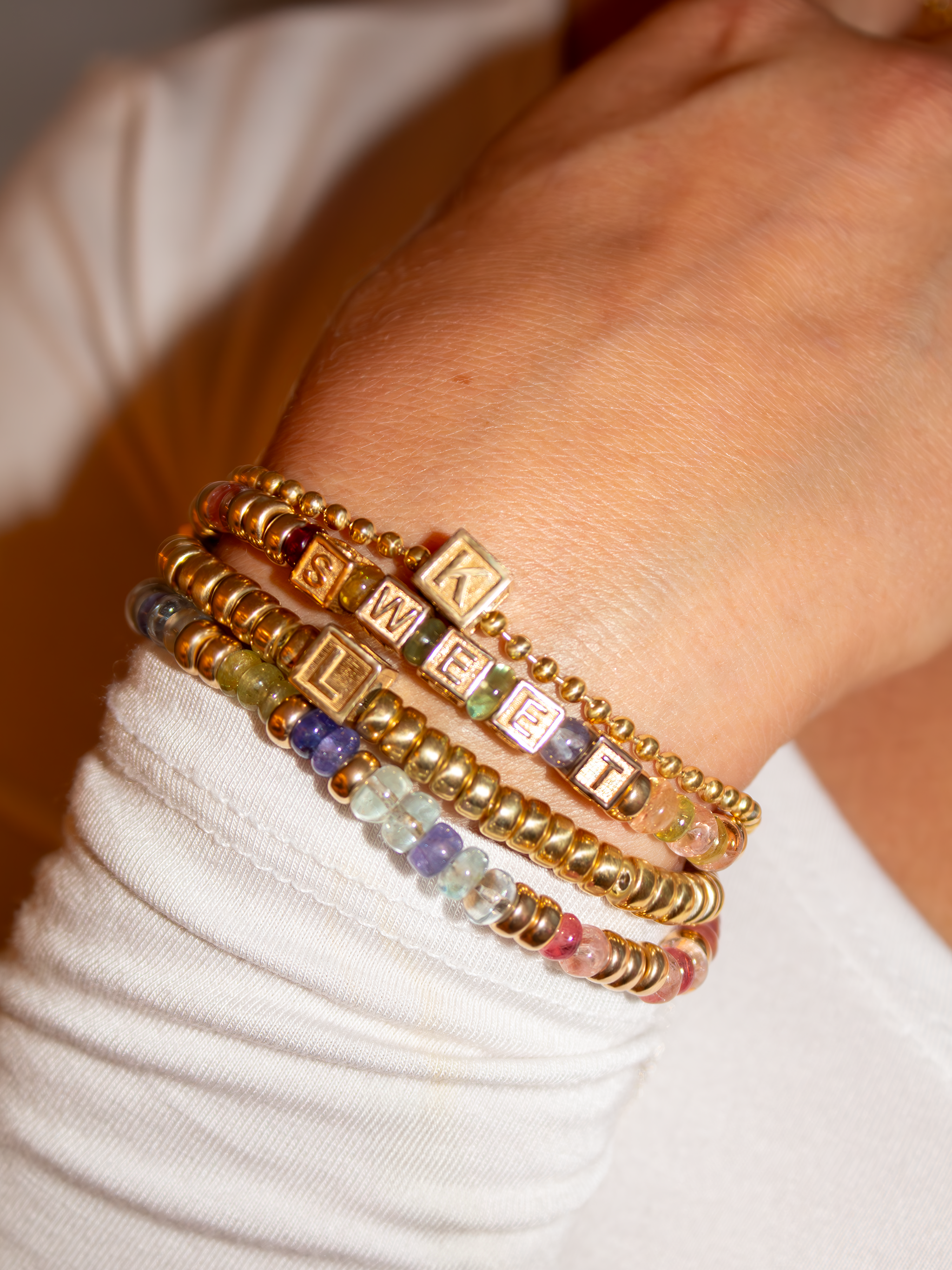 Simple shapes, Subtle details. This collection brings together every bracelet we make – from smooth gold links to delicate drilled stones – each one designed to sit close, stack easily, and wear effortlessly. No excess, no noise, just pieces you'll reach for every day.